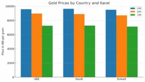 -सऊदी में 24 कैरेट गोल्ड की कीमत प्रति ग्राम SAR413 यानी ₹9,631 मिल रहा है।
